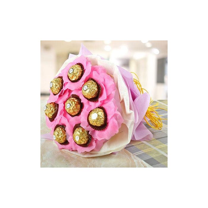 Delight your loved one with an awesome chocolate bouquet made with Ferrero Rocher chocolates, Present this beautiful gift to loved one on her special day.