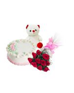 6 Red Roses Bouquet With 1/2 Kg Chocolate Cake