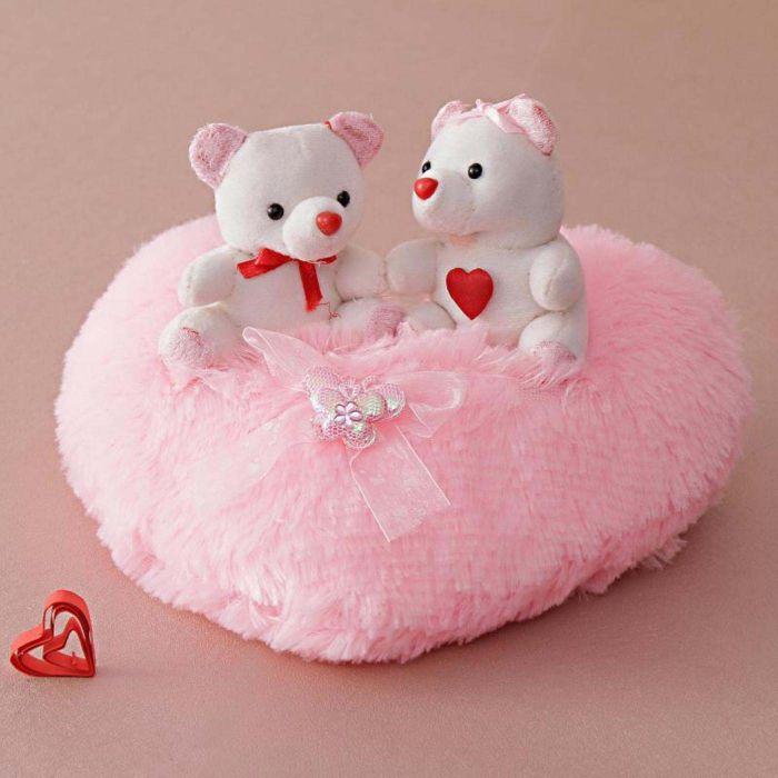 Gift this loveable teddy couple sitting on a pink heart-shaped cloud which is romantic to the core.