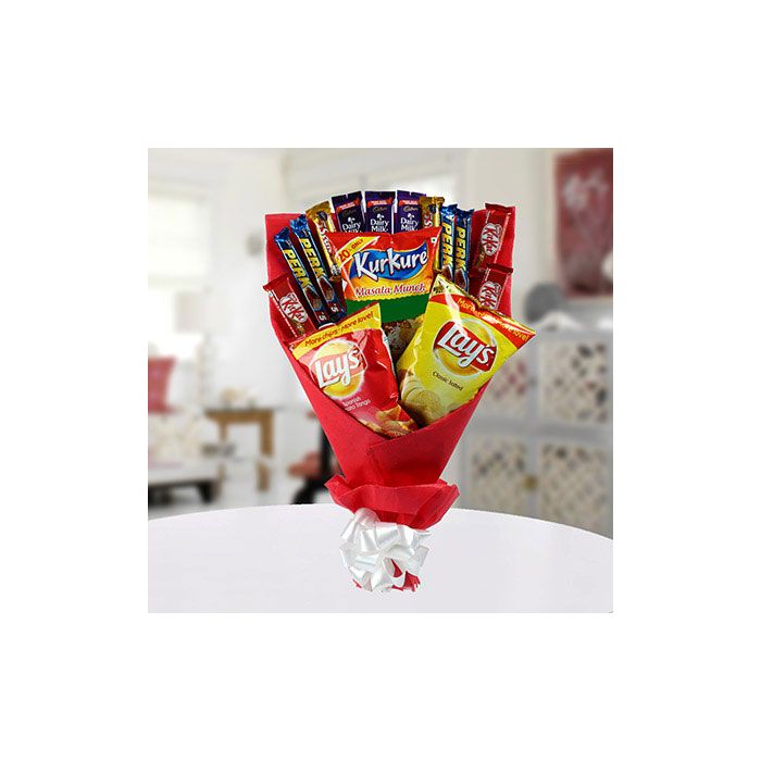 Present a delicious bouquet of snacks and mix chocolates your loved one will definitely get impressed on you by getting this.