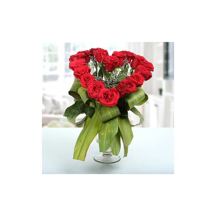 Present this wonderful arrangement of 18 red roses to your beloved that is gorgeously arranged with dracaena leaves.