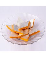 The name itself suggests its speciality, triangles are made with the goodness of kaju and pista mix with real kesar substance, with the right amount of sweetness. It will be neatly decorated with almond seeds. Which truly attracts children most by its fine shape and look. So order this delicious treat of 250 gms from SendGifts Ahmedabad for your family to make them happy on this Diwali.