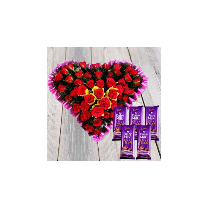 Romantic Heart Shaped Rose Bouquet With Chocolates