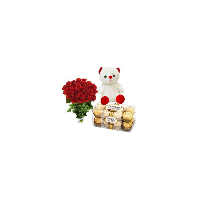 Roses Ferrero Rocher Box And Teddy Bear gift