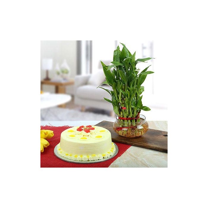 The scrumptious cake with a lucky bamboo plant is sure to illuminate your loved one special day, Bring back your loved ones lives luck with this lucky bamboo plant.