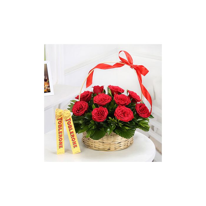 Basket of 10 Red Roses with 2 Bars of Toblerone