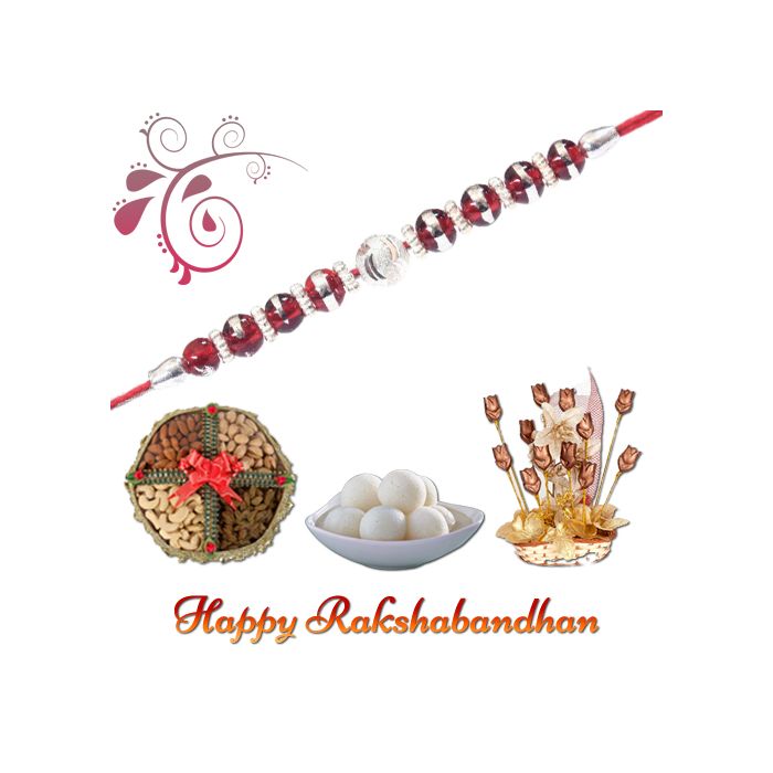 Beads Rakhi combo (Dryfruit, Sweets, Choco Flowers)