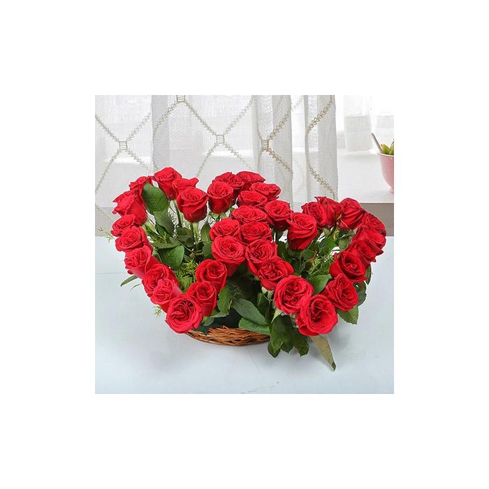 A beautiful arrangement of 37 roses arranged in 2 heart shape format in a basket is looks so charming by gifting this arrangement to your loved one can easily impress your loved one.