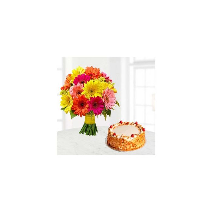 Beauty Of Gerberas Bunch & Butterscotch Cake