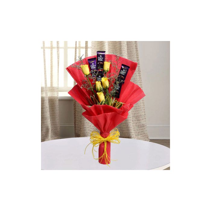 Bunch of Cadbury Dairy Milk Chocolates & Yellow Roses