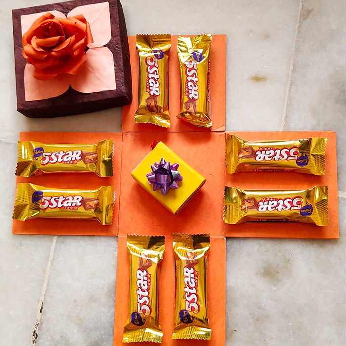 Sweeten the bond of love this Raksha Bandhan 2020 with your bhaiya with this special bundle of eight Five Star chocolates along with a gift box.