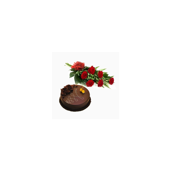 6 Red Roses Bouquet With 1/2 Kg Chocolate Cake