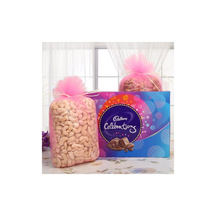 Gift a delectable hamper of dry fruits of cashew and almonds with a big Cadbury celebration to your loved one on any special occasion.