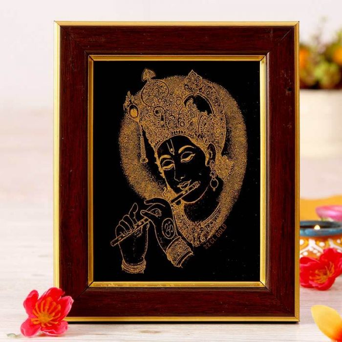 Buy artistically image of Anticl Krishna is prepared in 22ct gold and small crystals of glass. This is the beautiful gifts for home and office table decoration.