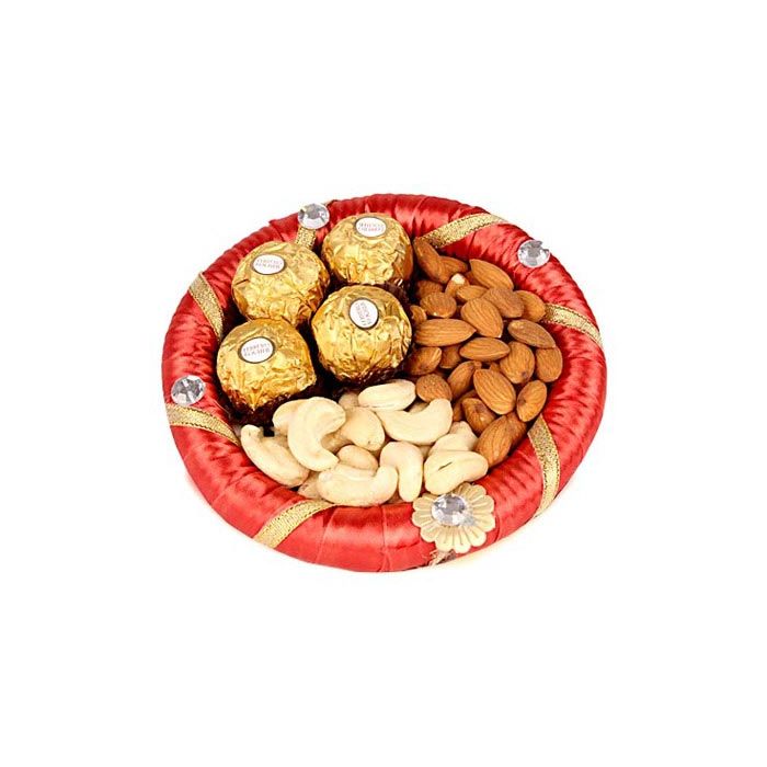 SendGifts presents a sweet crunchy combo on diwali, This delicious combo have Almonds and Kaju 100 grams each and 4 piece of tasty chocolates. So order today to your dear one.