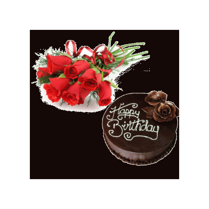 Yummy Chocolate Cake and 6 Red Roses Bunch