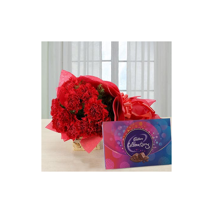 The best way to please someone is to gift them this exclusive gift hamper. A bunch of carnations combined with Cadbury Celebration Box that can win the heart of anyone.