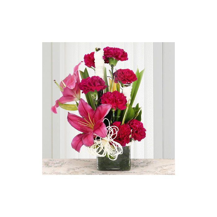 Bouqet full of flower arrangement with an elegant vase is a classy gifting item of souvenir.