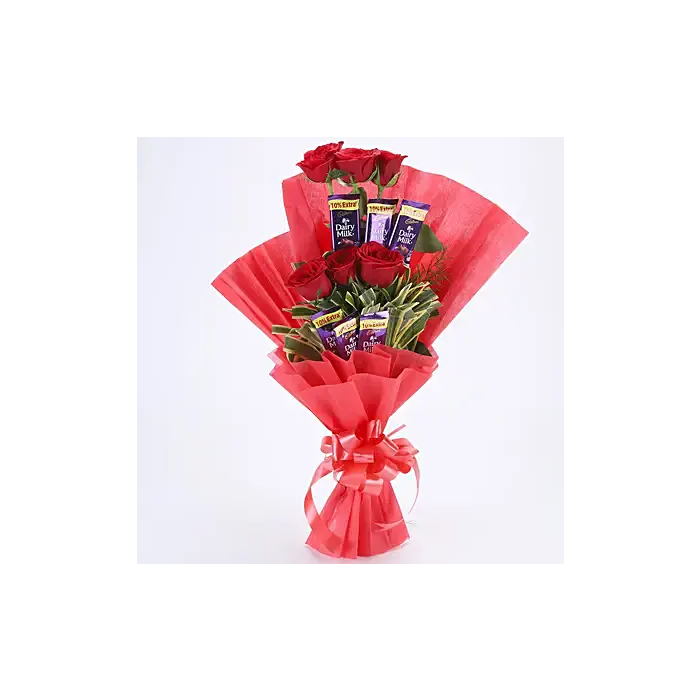 Chocolate Bouquet with 6 Red Roses