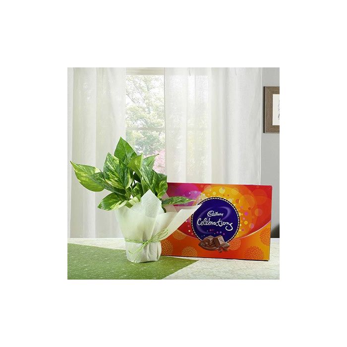 Looking for present something new but choosing problem is confusing you, Gift this beautiful plant of good luck money plant with a big Cadbury celebration pack.