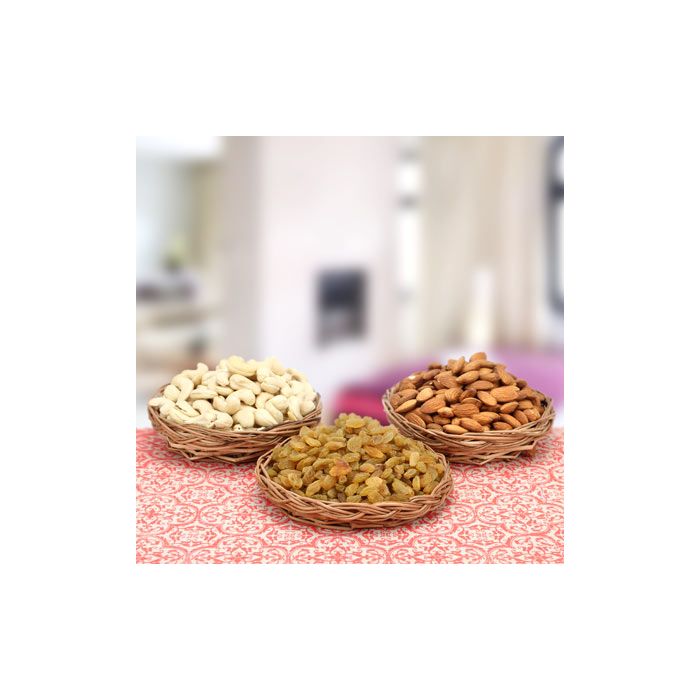 Buy a beautiful dry fruit collection of cashew nut, raisins, and almonds to your nearest and dearest one as a delicious healthy treat.