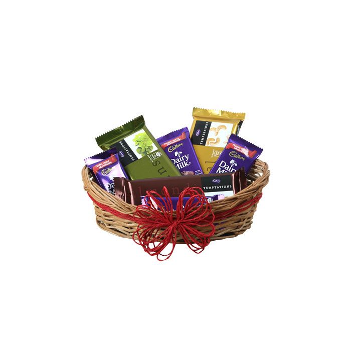 Get this amazing hamper filled with delectable chocolates in a round cane basket and make your loved one's day more delightful.