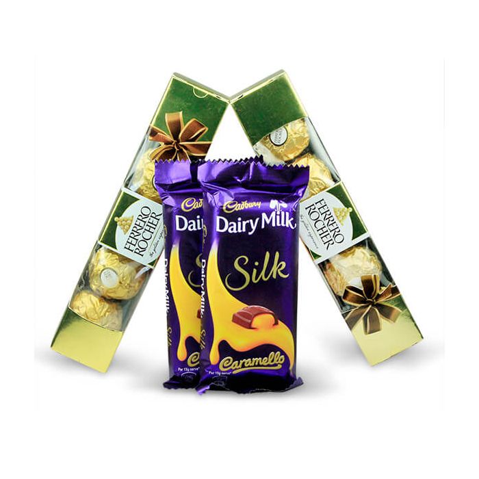 Send beautiful combo of chocolates to your best buddy on his/her special occasion. Best way to celebrate any ocassion with this Ferrero Rocher with Dairy Milk Silk Online.