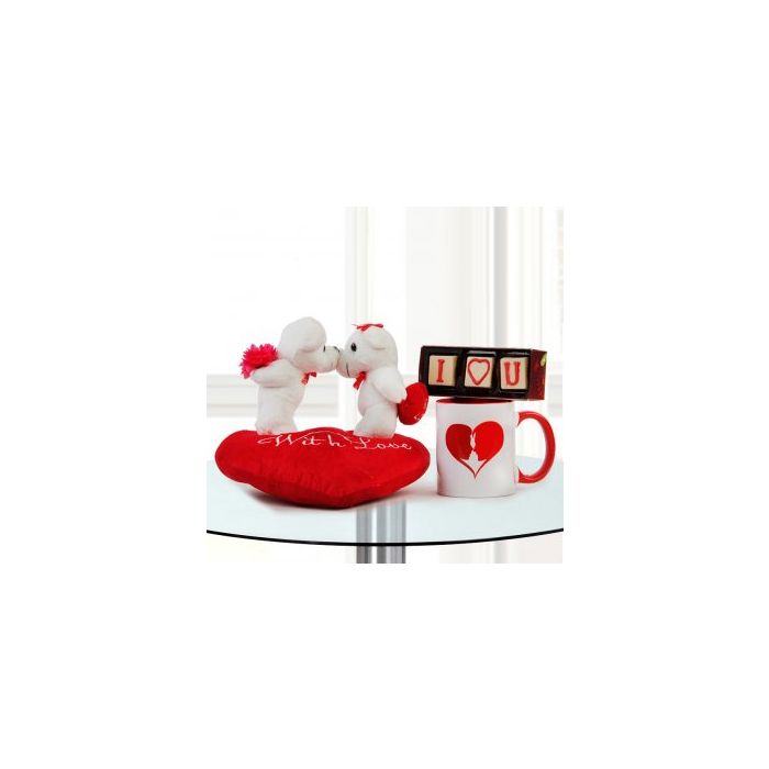 Gift a beautiful I love you double teddy bear joint with each other with a beautiful design of personalized Square shape I love you Chocolate with a personalized mug.