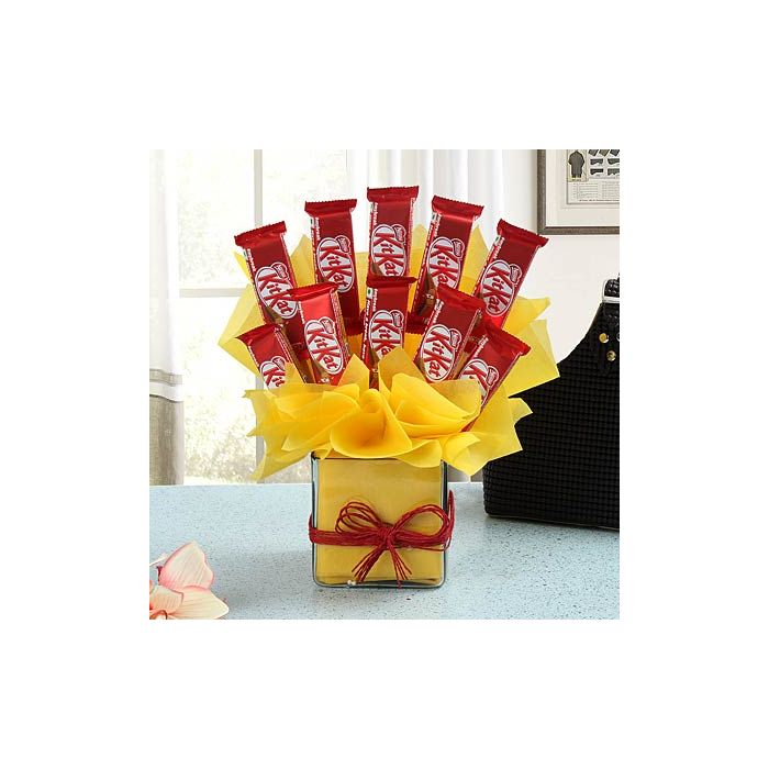 This special gift hamper customize with special kit kat chocolates will definitely cheer your loved ones. This bouquet serves as a lovely gifting option for your romantic partner.
