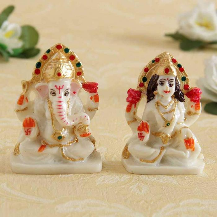Marble(dust) Idol of Goddess Lakshmi & Lord Ganesha