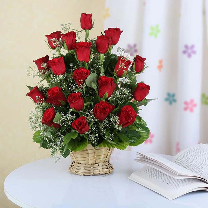 Special romantic red roses arranged in a special round basket gives a pretty look. Gift this big hamper of red roses to your special one on her special day.