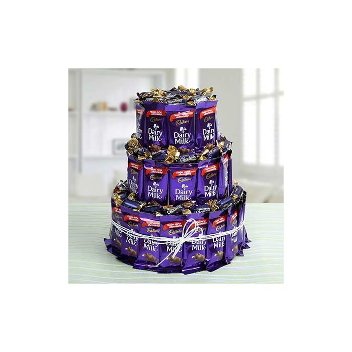 Arrangement Of these three layers of Cadbury dairy milk chocolates showing sweetness of your love to your loved one on any occasion.