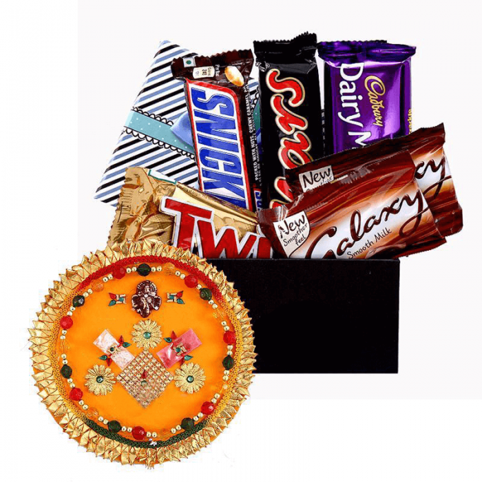 SendGift offers the best and perfect occasional gift hamper, So gift this perfect combo for your brother and make him happy. In this gift hamper, Various chocolates such as Twix, Dairy Milk Crackle, Snickers, Mars and Galaxy Smooth Milk along with Bhai Dooj Thali.
