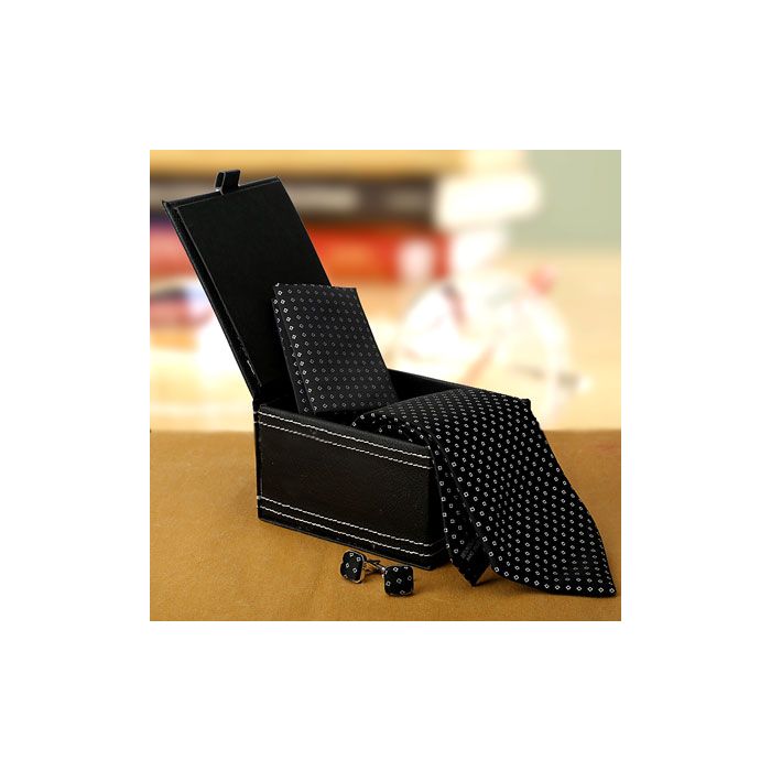 Send this special tie with cufflink to your loved he will definitely graceful on you. This attractive looking cufflink and tie is made of pure cotton.