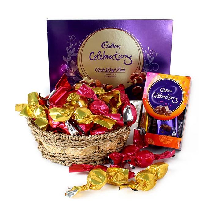 Celebrate your Valentine's Day with celebrations combo and more, A scrumptious arrangement of chocolates in a basket looks so awesome.
